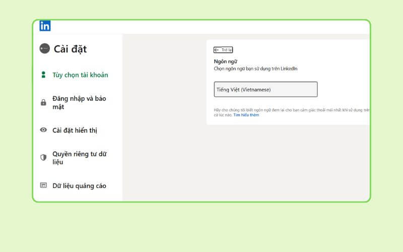 Hướng dẫn chi tiết cách đổi ngôn ngữ trên Linkedin sang tiếng Việt chỉ với vài bước đơn giản, giúp bạn thao tác nhanh chóng, dễ dàng.