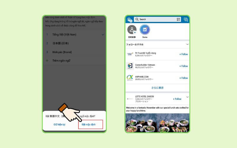Chọn ngôn ngữ bạn muốn sử dụng trên thiết bị. Xác nhận lựa chọn để đặt ngôn ngữ mới làm mặc định. Mở lại ứng dụng LinkedIn và kiểm tra, bạn sẽ thấy ngôn ngữ đã được cập nhật.